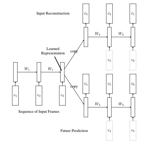 Fig 5. The Composite Model: The LSTM predicts the future as well as the input sequence. (Image source: Srivastava et al).